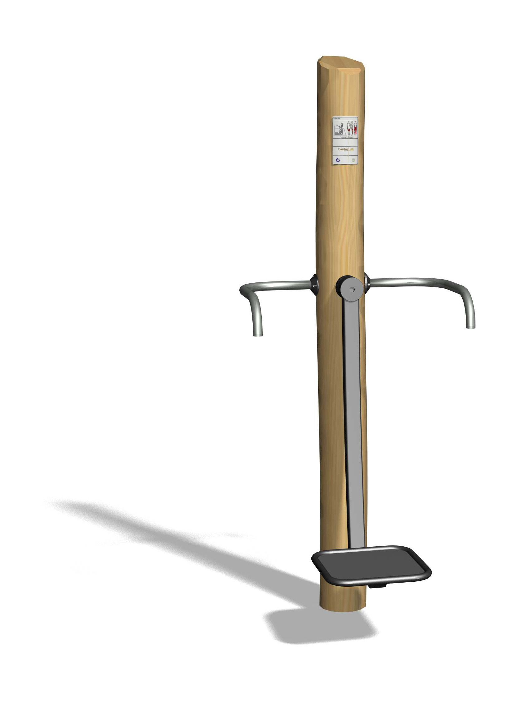 Wartungsarme Drehlager. Ausführung in Stahl mit Edelstahl Elementen. Mit integrierter Übungsanleitung. In Kombination mit naturgewachsenen Hartholz Pfosten, unbehandelt.