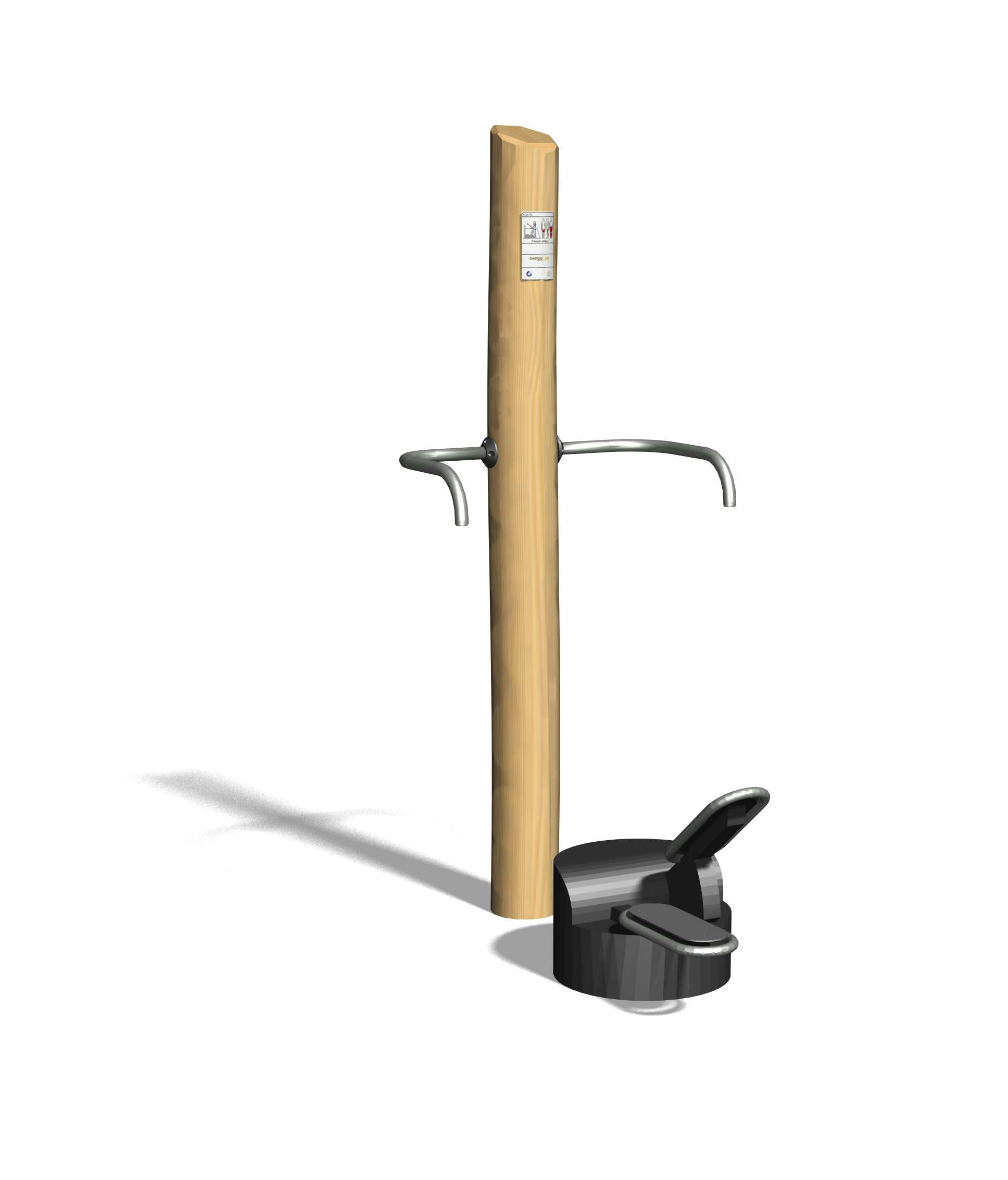Wartungsarme Drehlager. Ausführung in Stahl mit Edelstahl Elementen. Mit integrierter Übungsanleitung. In Kombination mit naturgewachsenen Hartholz Pfosten, unbehandelt.