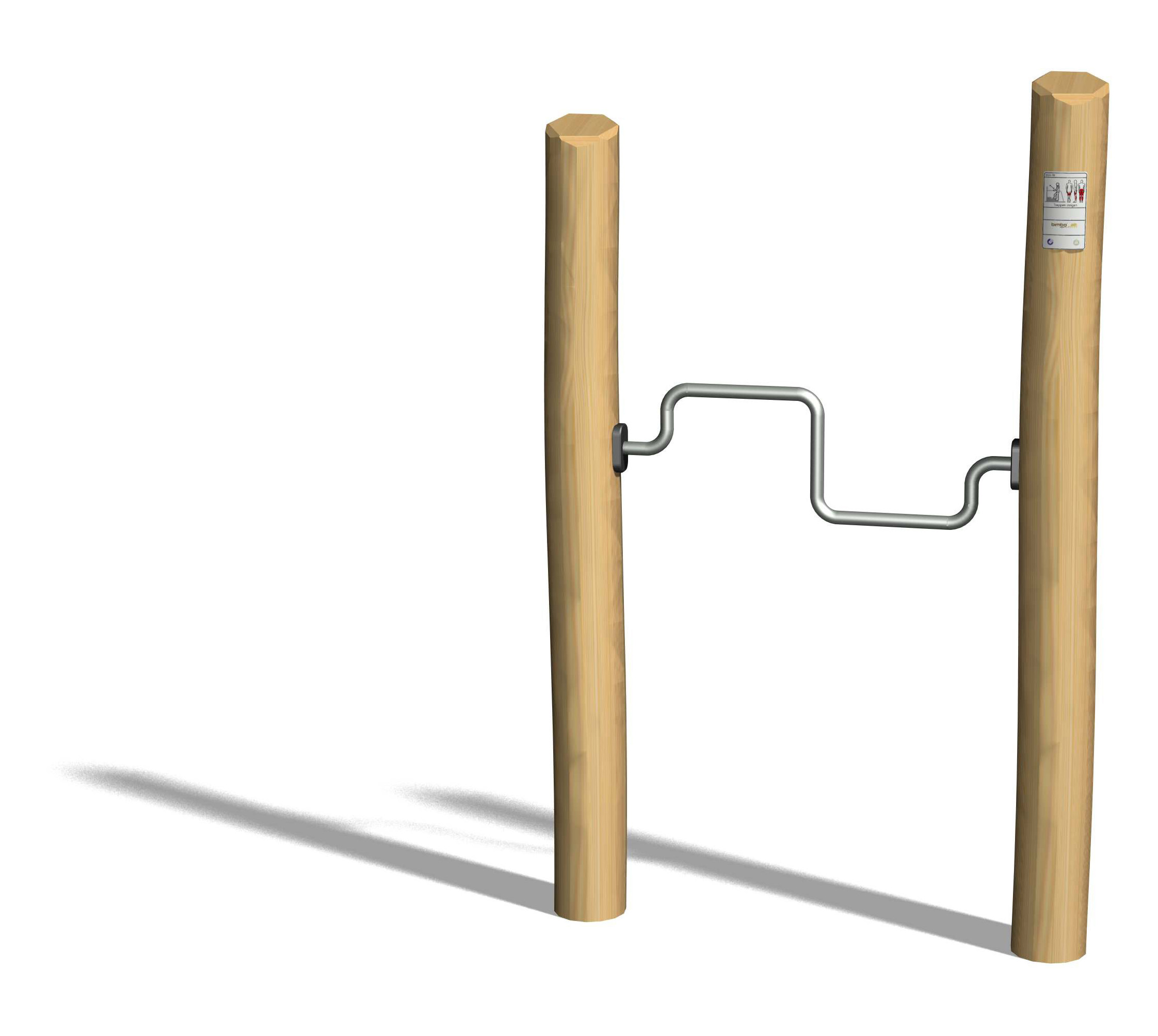 Wartungsarme Drehlager. Ausführung in Stahl mit Edelstahl Elementen. Mit integrierter Übungsanleitung. In Kombination mit naturgewachsenen Hartholz Pfosten, unbehandelt.