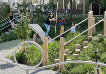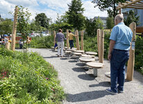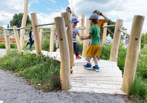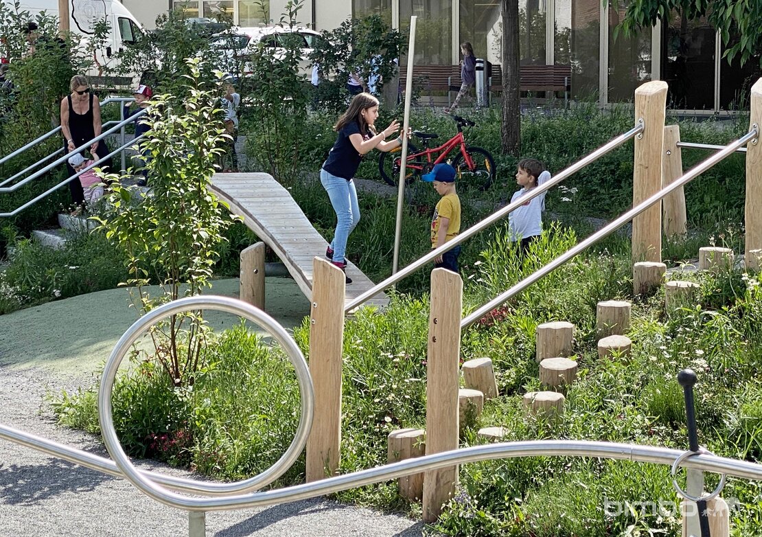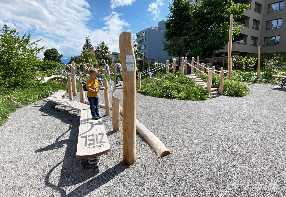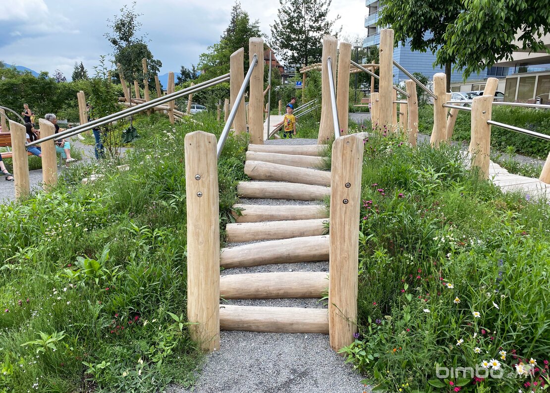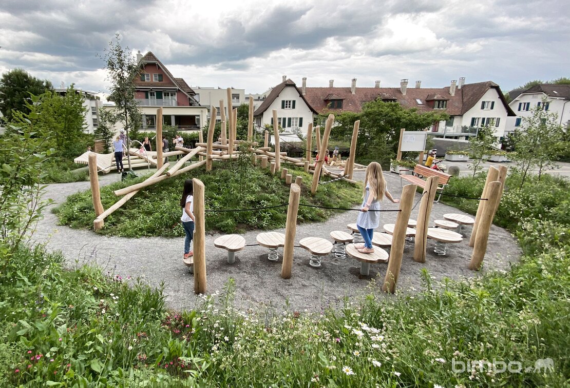 Bei diesem Projekt wurde ein Teil des bestehenden Parkplatzes neu umgestaltet. Entstanden ist ein beliebter Spiel- und Bewegungspark für Klein und Gross. Ein Treffpunkt und Begegnungsplatz beim Altersheim. Natürliche Gestaltung mit unbehandelten, naturgewachsenem Hartholz in Kombination mit Edelstahl Elemenenten.