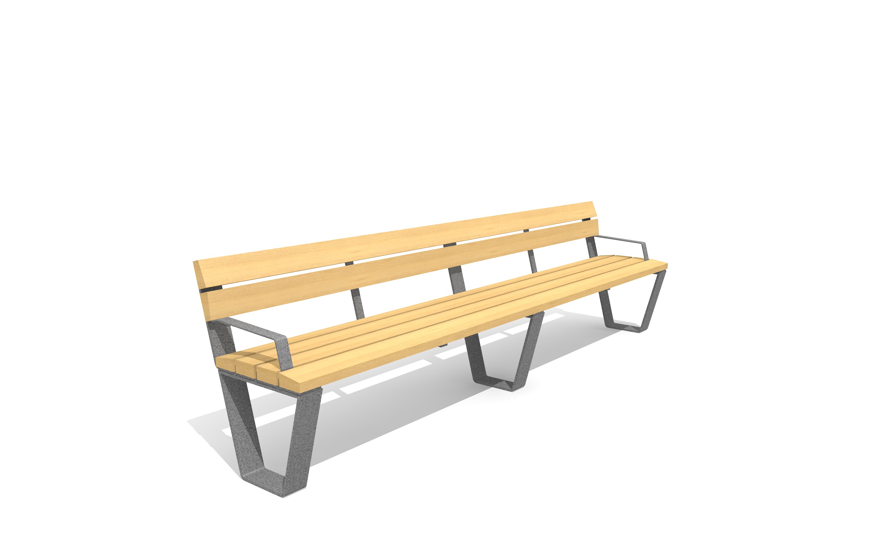 Gestell in Stahl verzinkt. Auflagen in Schweizer Douglasienholz, unbehandelt. Douglasien-/Lärchenholz kann in der Anfangszeit Harzaustritt aufweisen.