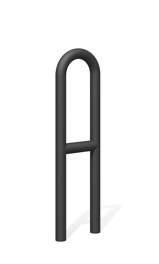 Stabile, dickwandige Rohrbügel zum Einbetonieren. Ausführung in Stahl verzinkt, zusätzlich anthrazit beschichtet oder in Edelstahl. Gegen Mehrpreis zum Aufschrauben. Andere Farben auf Anfrage.