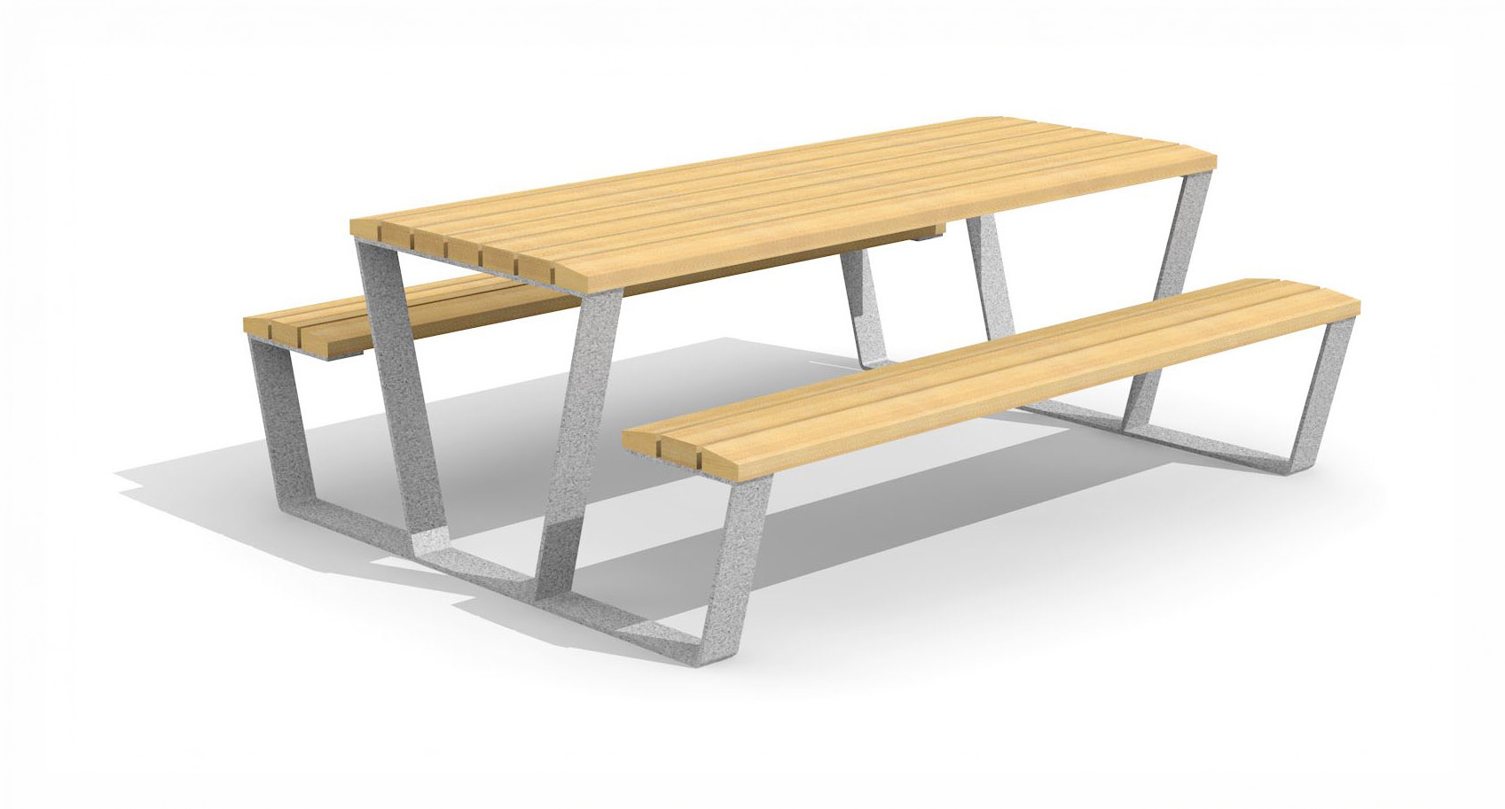 Auflagen in Schweizer Douglasienholz, unbehandelt. Stahlrohrgestell feuerverzinkt.