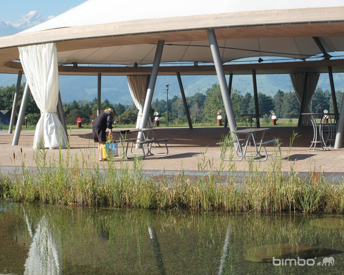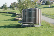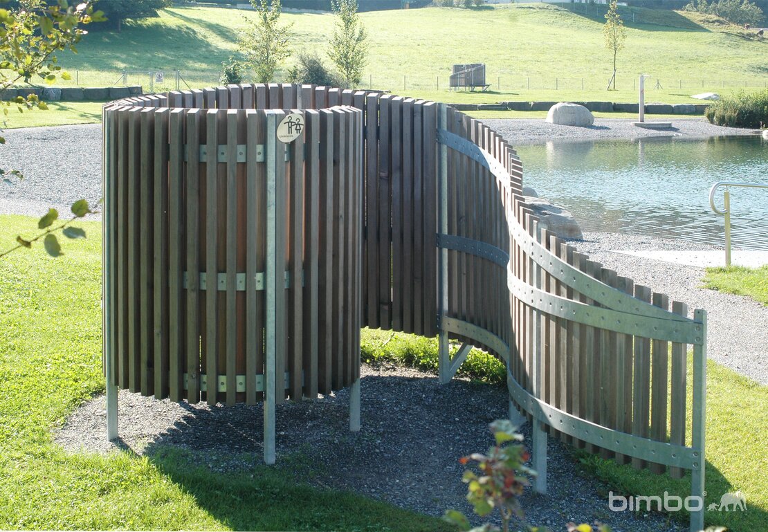 Ein cooles Projekt in Gamprin, Liechtenstein. Hier wurde auf der grünen Wiese ein Badesee realisiert. Tischgarnituren beim Kiosk, Parkbänke und die stylischen Umkleidekabinen wurden von uns geliefert bzw. hergestellt. Tischgarnituren mit wetterfesten Duro Kunststoffplatten. Umkleidekabinen in Lärchenholz mit verzinkter Stahkonstruktion.