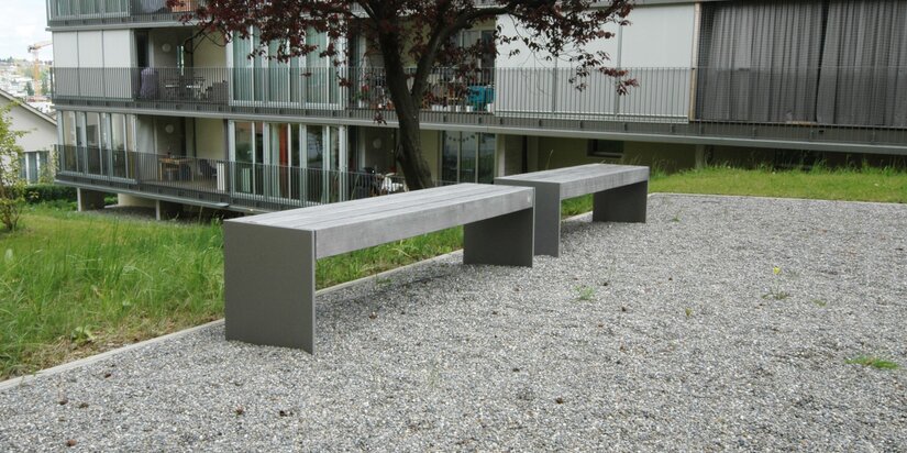Schlichtes Aussenmobiliar im Quartier