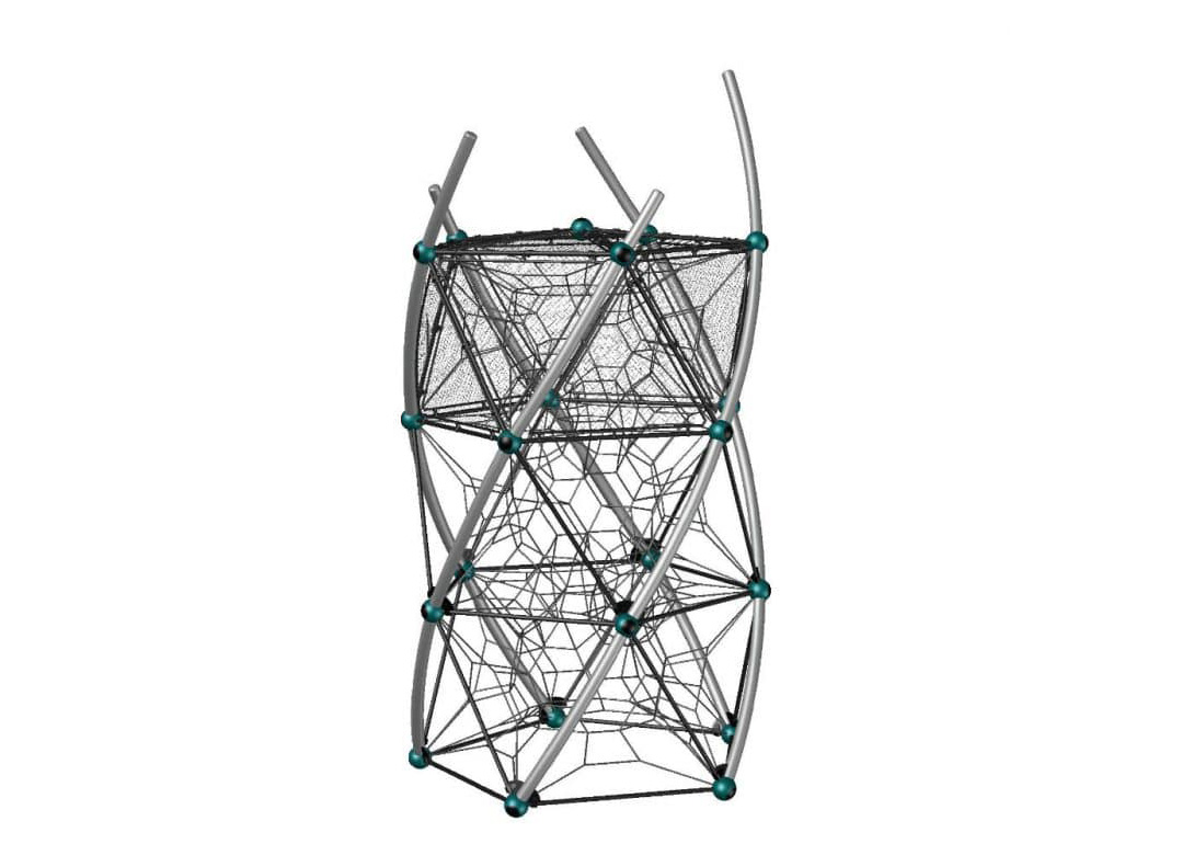 Einzigartige, formschöne Klettergeräte in unverwüstlicher, langlebiger BSF-Qualität. Schlanke Türme mit Raumnetz im Innern. Auch Kombinationen mit Brücken, Anbauelementen oder Rutschen möglich.