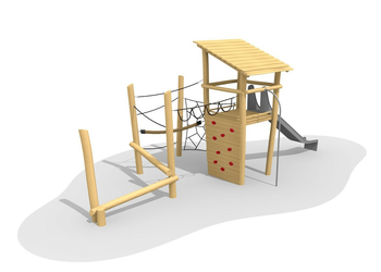 Mit vielen Kletter- und Balanciermöglichkeiten sowie einer Rutsche ist diese kompakte Spielanlage beliebt und herausfordernd.