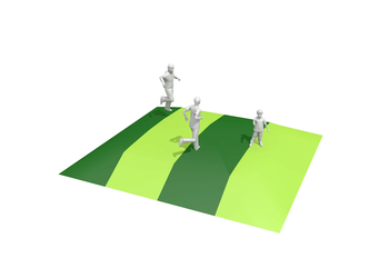 Es wird gehüpft, gesprungen und rotiert. Die dynamische Sprungfläche animiert zum Bewegen und Ausprobieren. Gleichzeitig ist dieses Gerät ein Treffpunkt zum Liegen und Verweilen. Hier trifft man sich. Eine Ebene Fläche ist Voraussetzung.