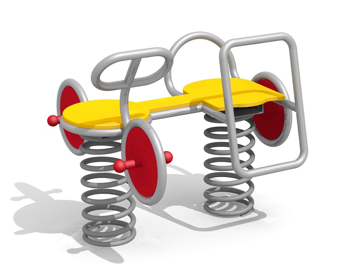 Oberteil in massiven Edelstahlrohren mit matter Oberfläche. Platten in wetterfesten Kunststoffplatten. Der Unterbau ist mit den gewohnten Spezialfedern ausgestattet. Inklusive Eingrabeanker. Feder silbergrau.