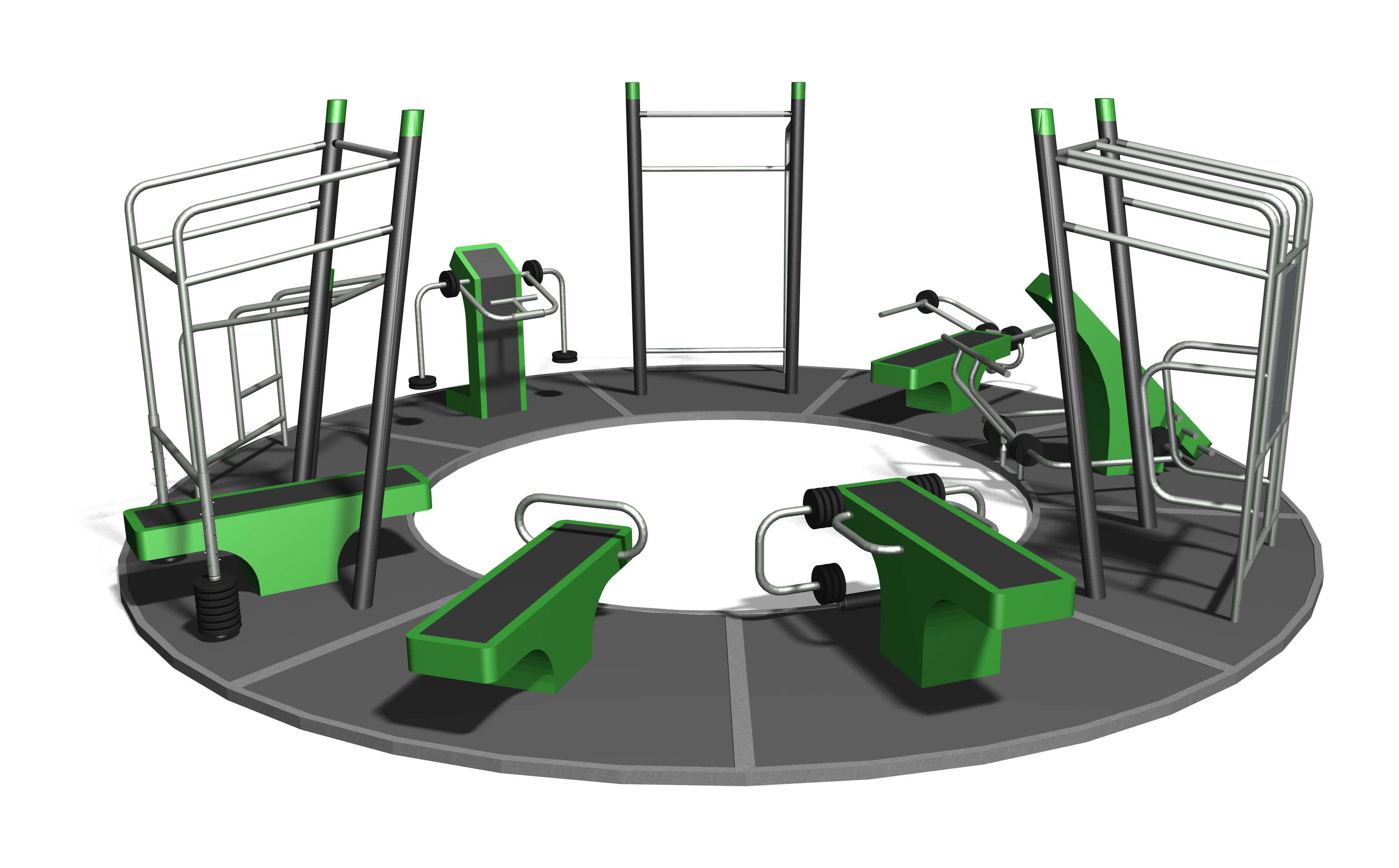 Wartungsarme Drehlager. Ausführung in Stahl mit Edelstahl Elementen. Mit Übungsanleitung. Farbgebung nach Farbkarte. Bodenplatten gummiert.