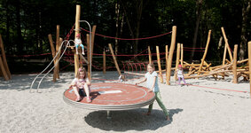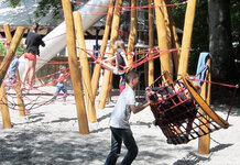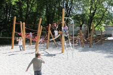 Ein natürlicher Spiel- und Pausenplatz mit vielen Herausforderungen. In den Pausen können viele Kinder gemeinsam spielen und klettern. Vulkanturm mit Innenaufstieg und Sicherheitsnetzen. Ausführung in unverkennbarem bimbo nature Stil. Oberfläche lasiert mit Naturölfarben.