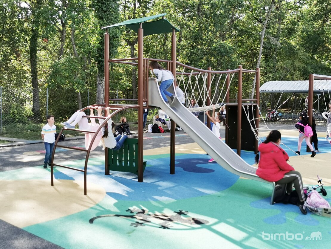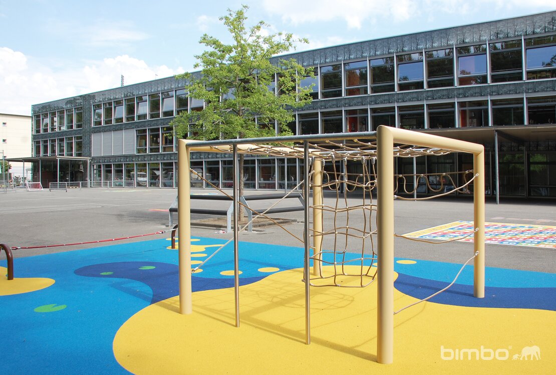 Dauerhafte Spielwelt in Stahl. Diese Spielanlage ist aus unserer bimbo classic color Linie. Auch hier ermöglicht die modulare Bauweise unendliche Anbauten und Möglichkeiten. Stahlkonstruktion verzinkt und farbig beschichtet. Verbindungselemente, Rutsche und Rutschstange in Edelstahl. Vandalensichere b-rope Seile.