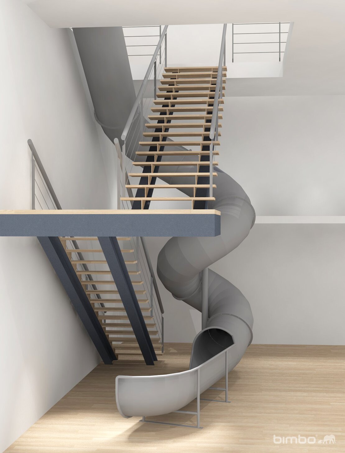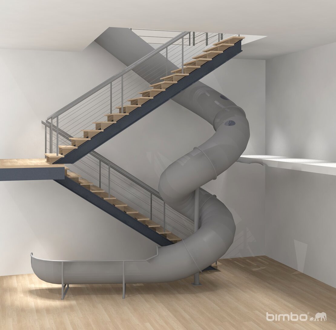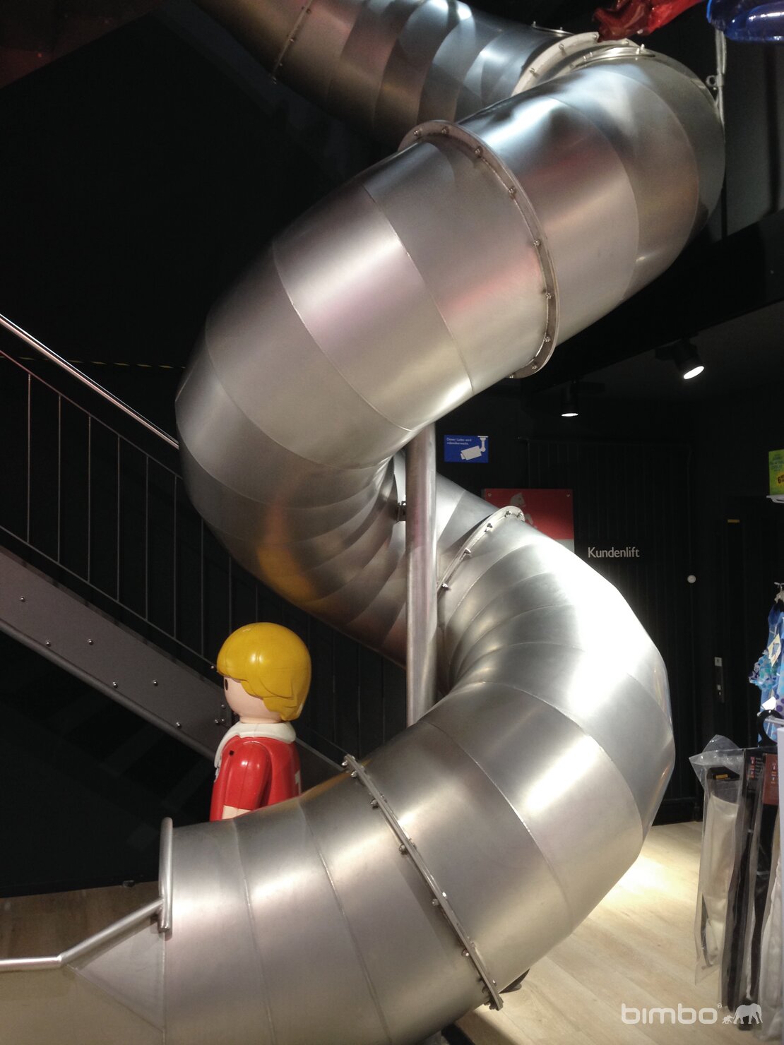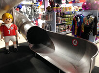 Diese Wendelrutschbahn im Verkaufsladen ist der Hit. Eine Herausforderung war besonders die engen Platzverhältnisse und die genauen Bauvorgaben. Eine individiuelle Fertigung war unumgänglich. Gesamte Rutsche in Edelstahl. Mit elektronisch gesteuerter Rotlicht Signalisation.