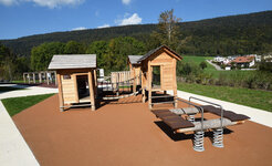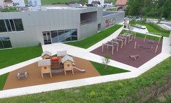 Unverkennbare Themenwelt des Schweizer Schokoladenherstellers Camille Bloch. Ein XL-Ragusa als Aussichtsturm mit weiteren individuellen Spielgeräten und passenden Details. In unbehandeltem Robinien Hartholz. Aussichtsturm mit wetterfesten Duro Kunststoffplatten. Die Sitzbuchstaben sind mit wetter- und schlagfestem Kunststoff überzogen und farbig beschichtet.
