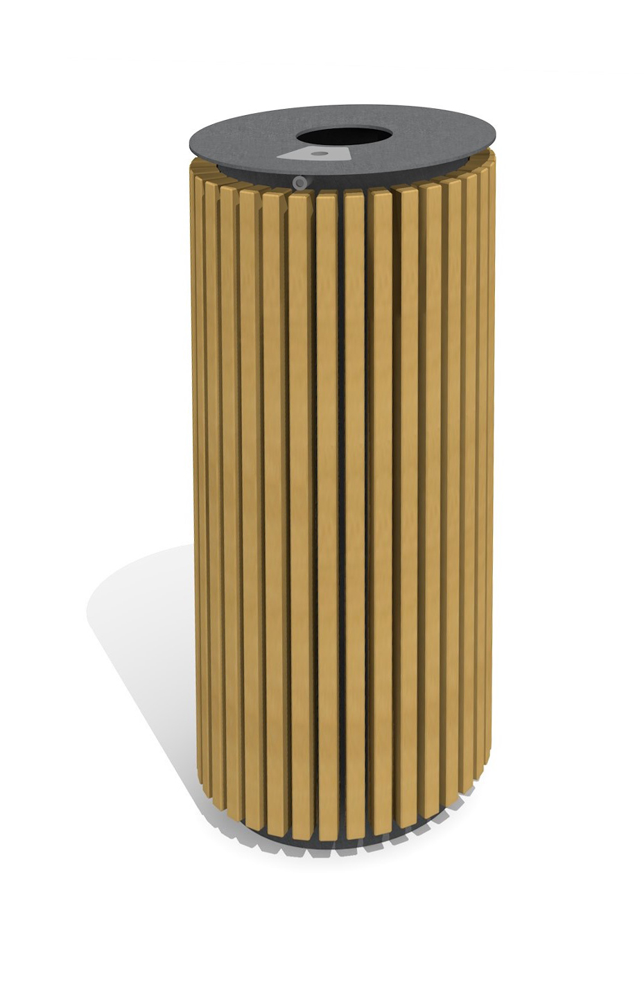 Poubelle Urba ronde 75 L en bois avec cendrier