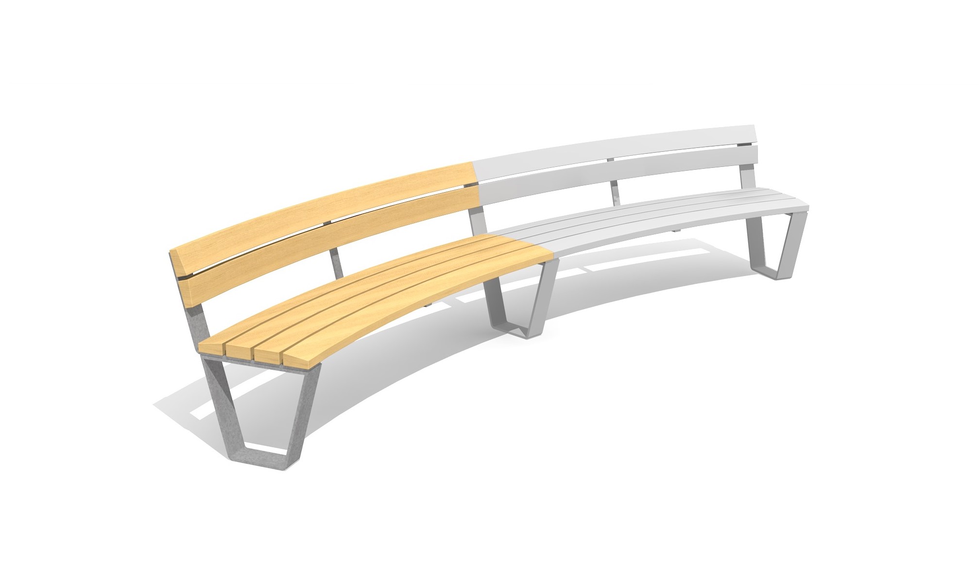Surfaces ergonomiques sur les assises en bois Suisse durable. Rayon extérieur dossier.
