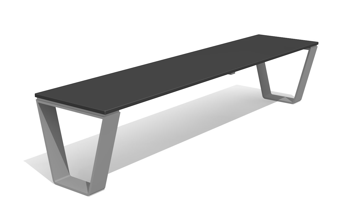 Châssis en inox. Dessus en matière synthétique HPL anthracite ou selon palette de couleurs.