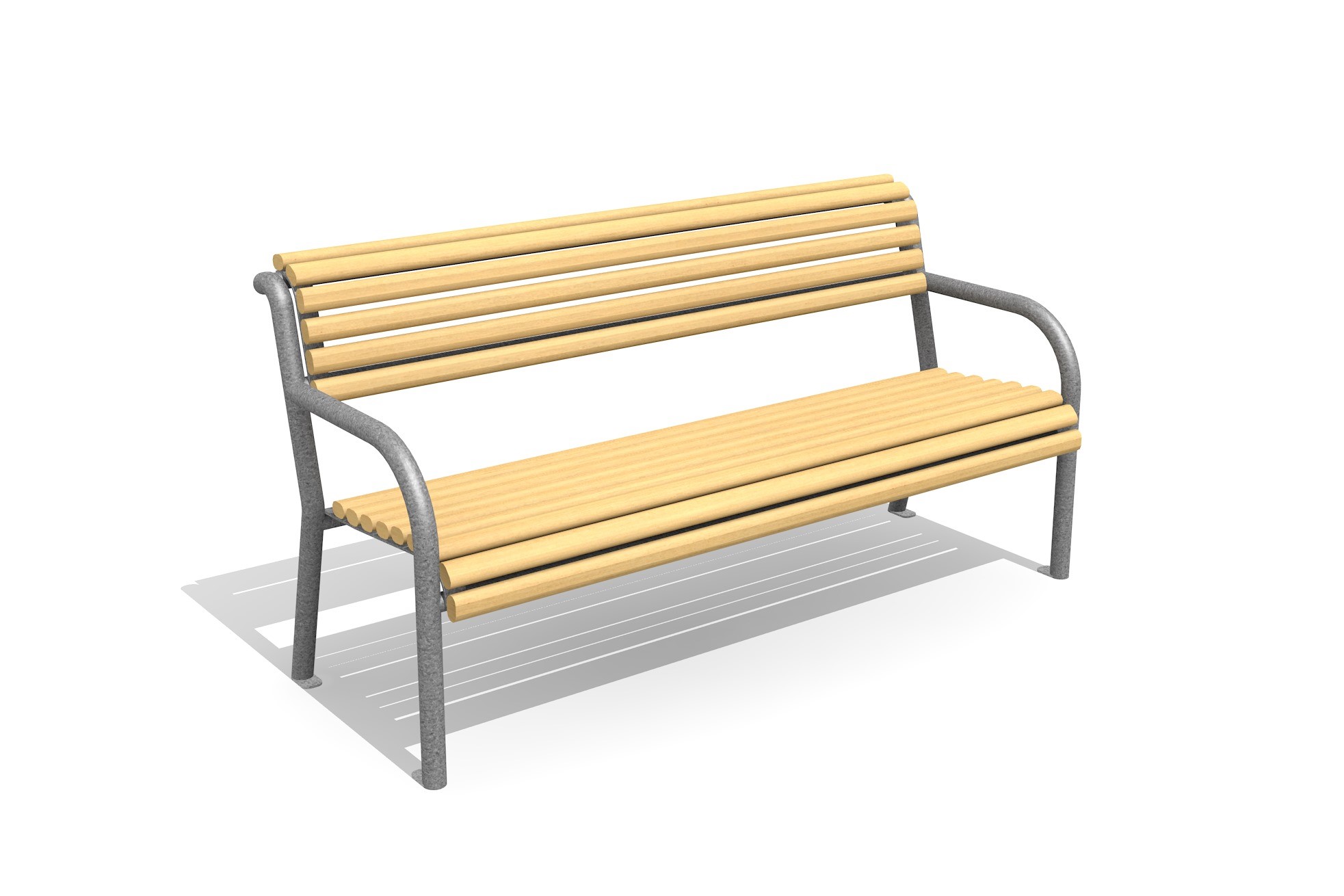 Banc avec dossier et accoudoir. Une méthode de construction solide, avec une assise confortable.