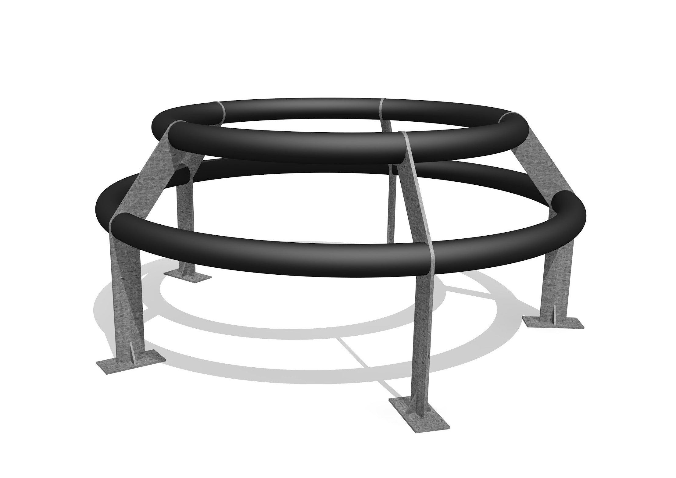 Armature en métal zingué à chaud. Armature en métal entourée de matière synthétique noire.