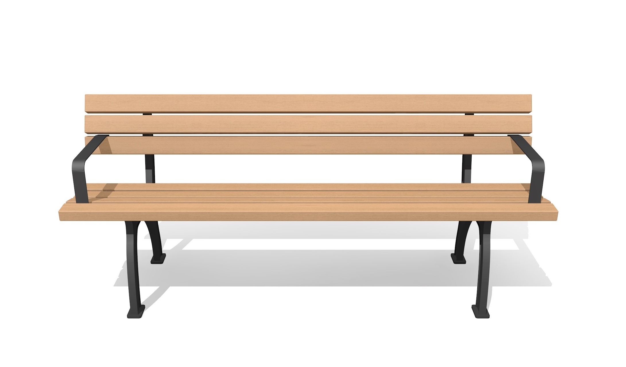 Aramture en fonte, laquée noir. Lattage en bois FSC dur, non traité.
