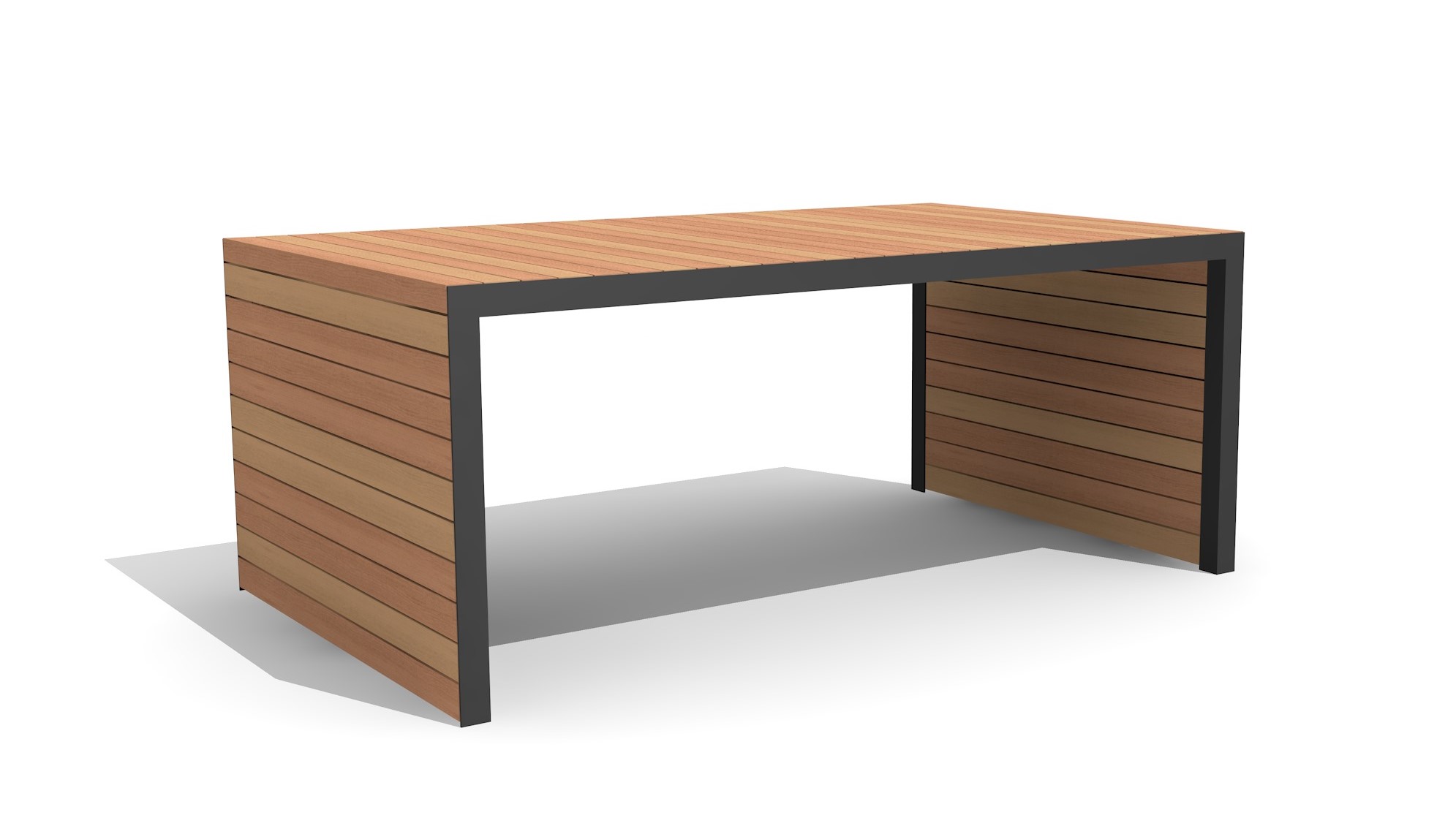 Armature en métal zingué et thermo laquage gris argenté ou anthracite. Lattage en bois dur FSC, non traité.