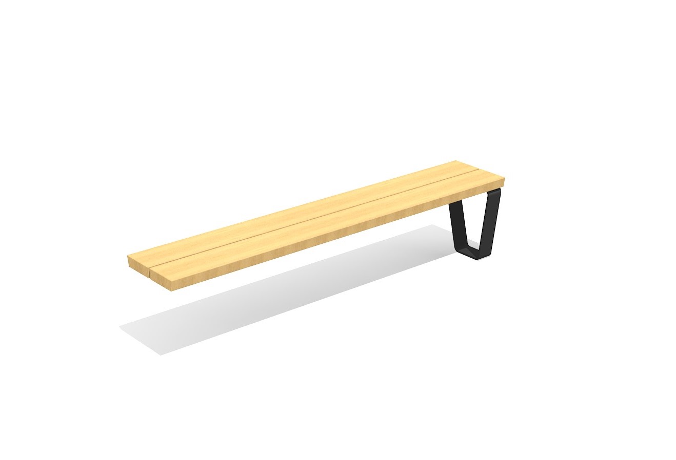En bois dur FSC, non traité. Armature en aluminium revêtu. Les pieds ont des perforations pour un ancrage au sol. En couleur gris argenté ou anthracite.