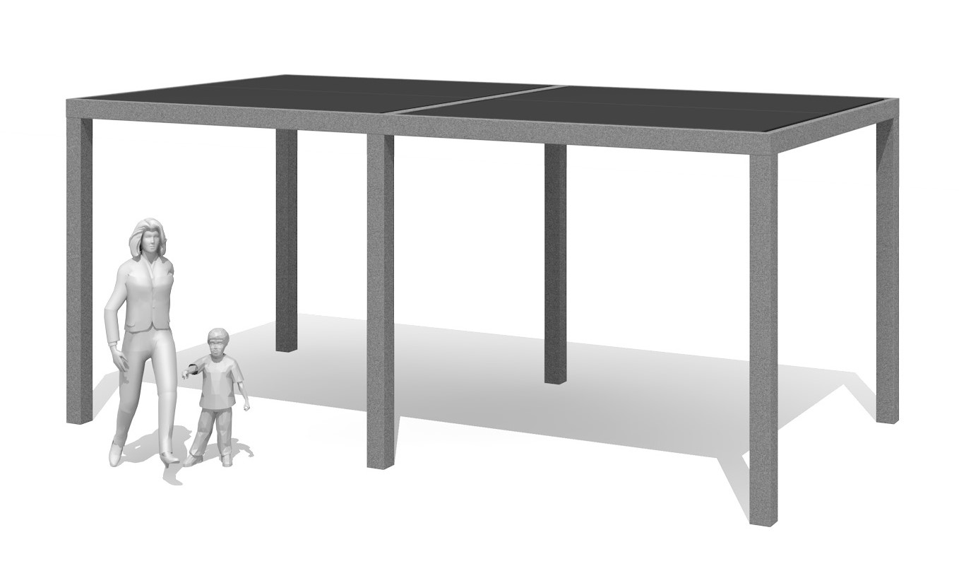 Surfaces en plaques de plastique Duro résistantes aux intempéries selon le nuancier. Montage à visser. Piétement galvanisé.