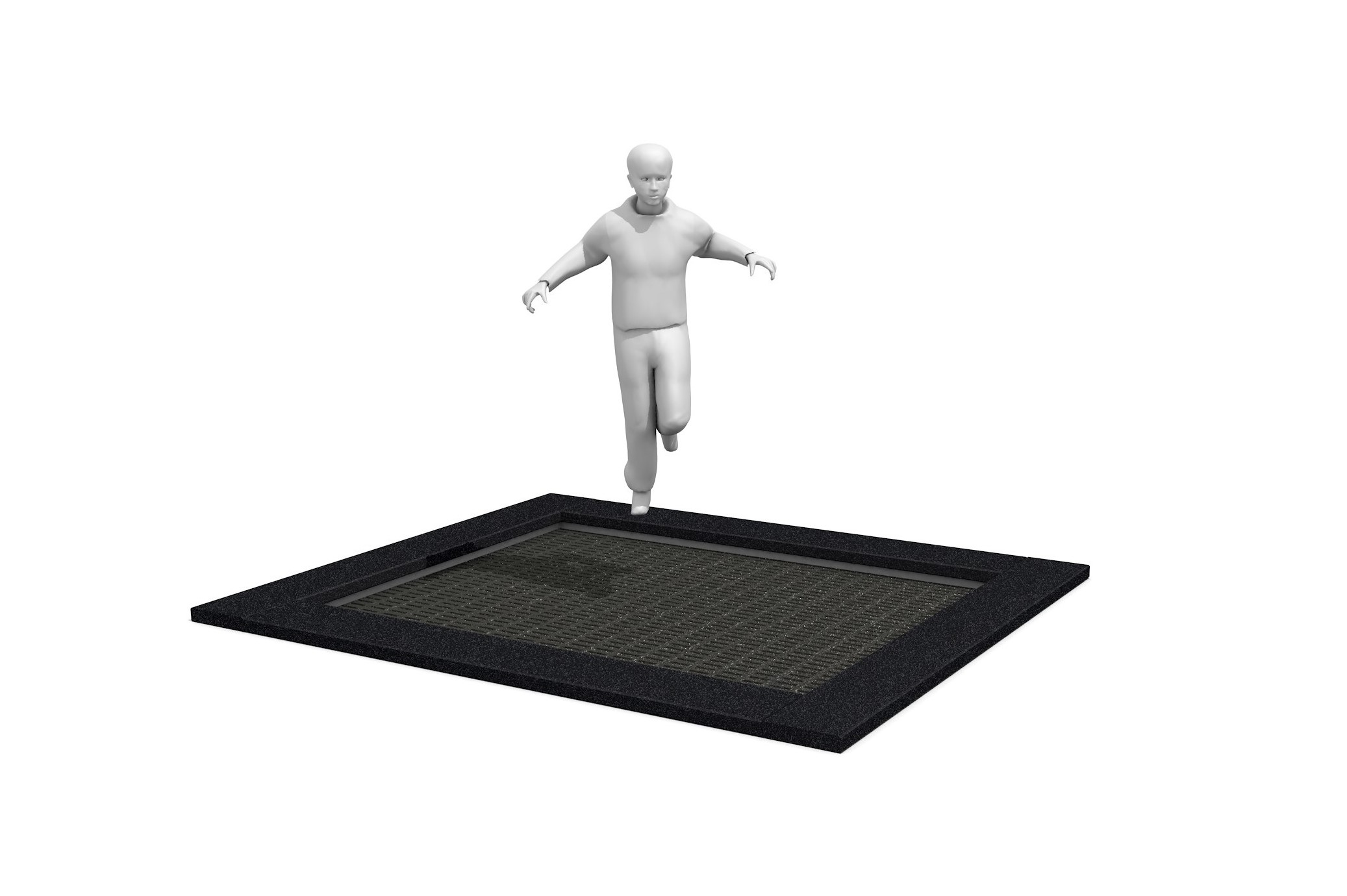 Ce trampoline est idéal pour toute place de jeux et de récréation et aura une fréquentation record. Pour des raisons de sécurité, la hauteur du saut est moindre qu’avec un trampoline normal.