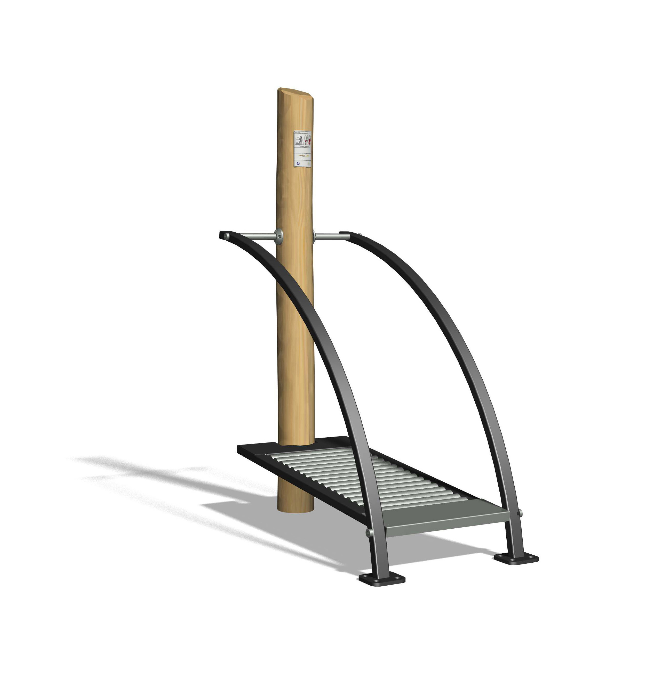 Roulements avec un minimum d'entretien. Exécution en acier avec éléments en inox. Instructions d'exercices intégrées. En combinaison avec un poteau en bois dur croissance naturelle.