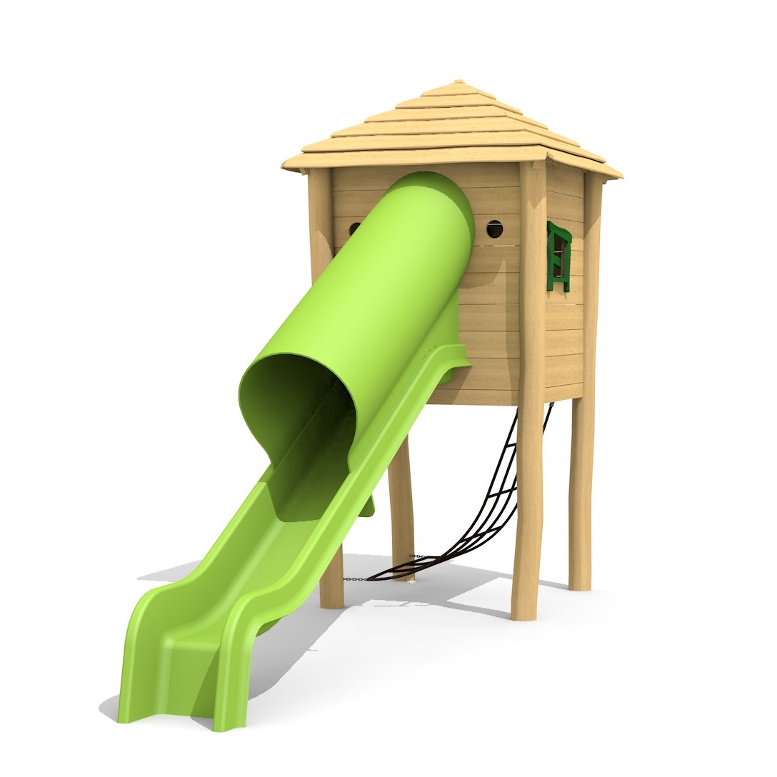 Cabane à filet, toboggan tunnel GFK, toit à 4 pans