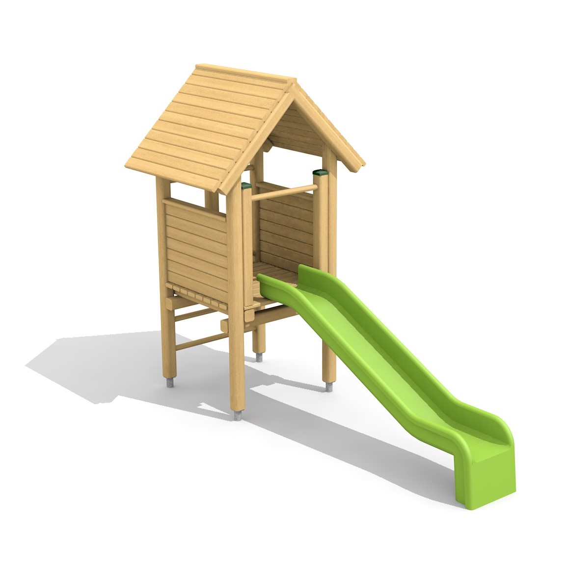 Bois résineux massif. Socle en métal zingué à chaud inclus. Toboggan en polyester.