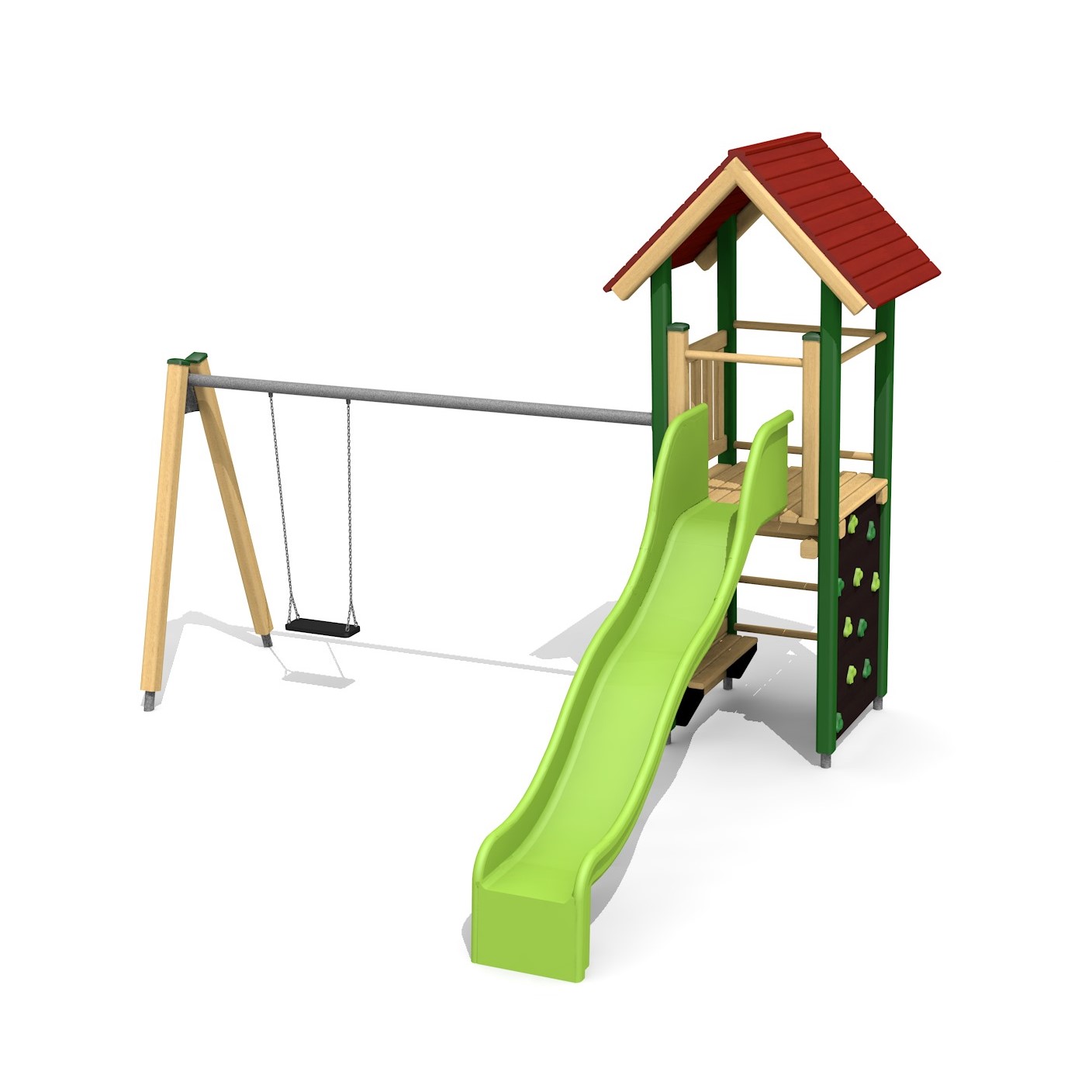 Cette tour offre différentes possibilités de grimper sur chaque côté. En combinaison avec la balançoire, elle est une petite combinaison de jeux compacte.