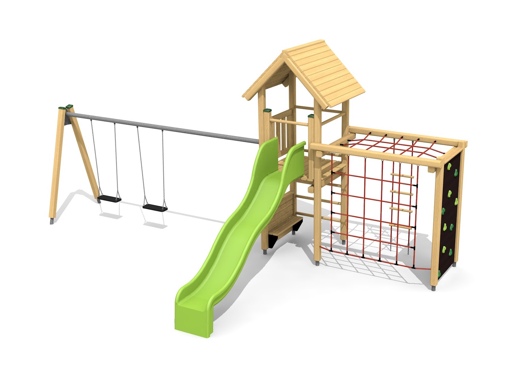 Cette combinaison offre les possibilités les plus diverses aux enfants. Avec la balançoire c’est une combinaison de jeux complète sur un petit secteur.