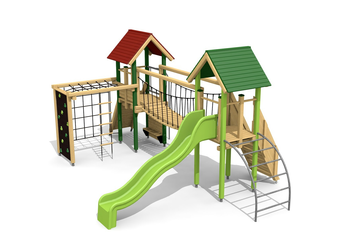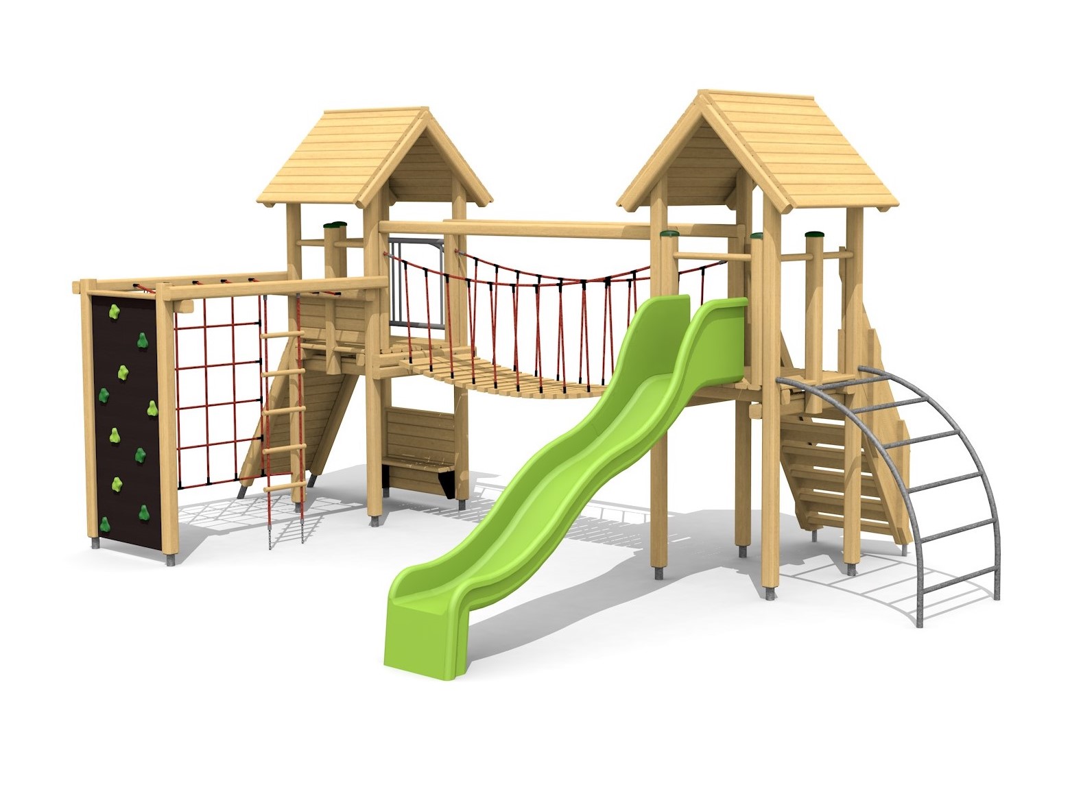 Deux tours forment la base de ce passionnant paysage à grimper. Le pont suspendu ainsi que les différentes possibilités de monter et descendre offrent de nombreuses possibilités de jeux aux enfants.