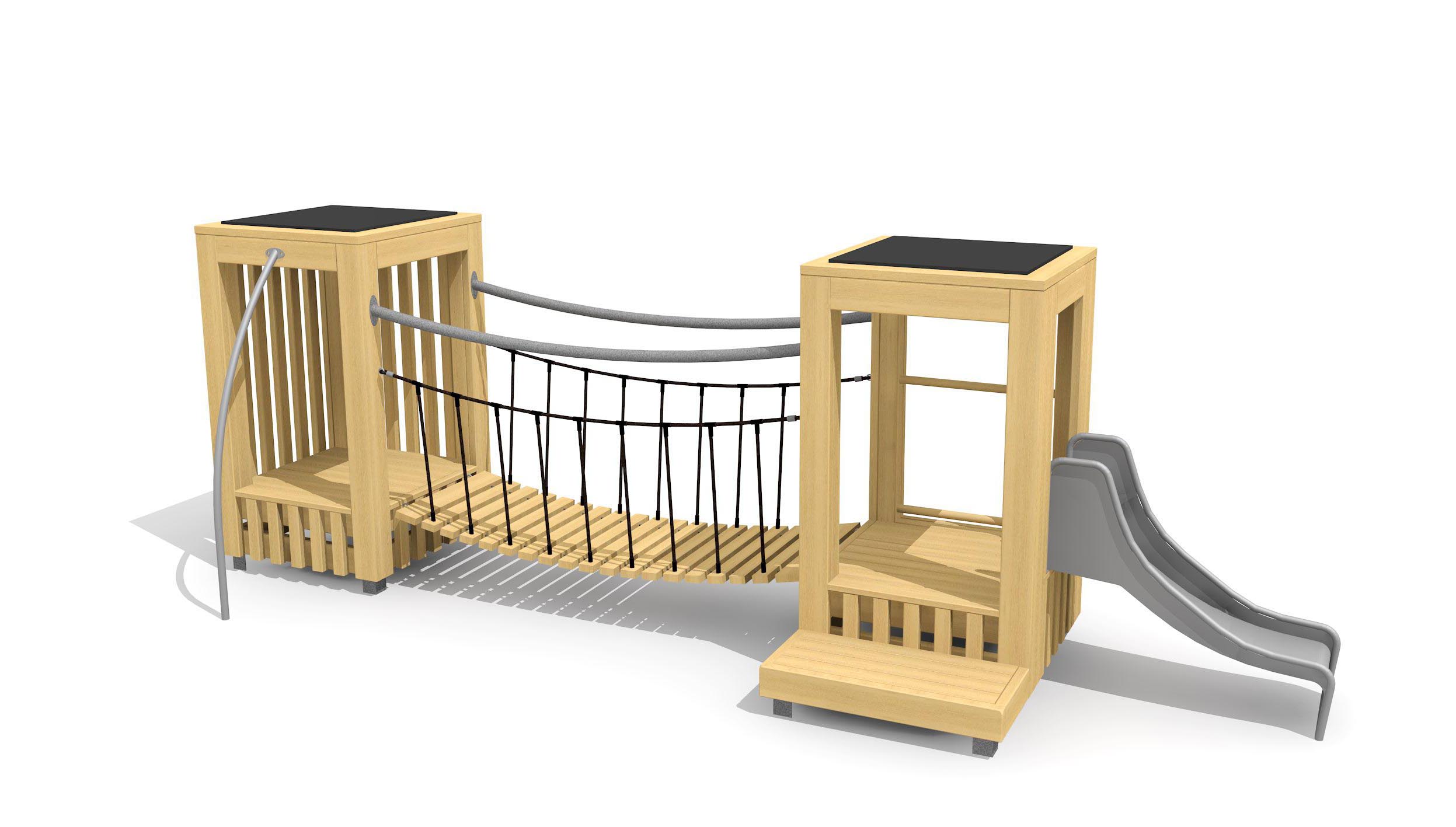 En bois de douglas Suisse, non traité. Tous les jeux avec consoles en acier galvanisé. Toit en matière synthétique résistante aux intempéries couleur anthracite. Toboggan et perche à grimper en inox.