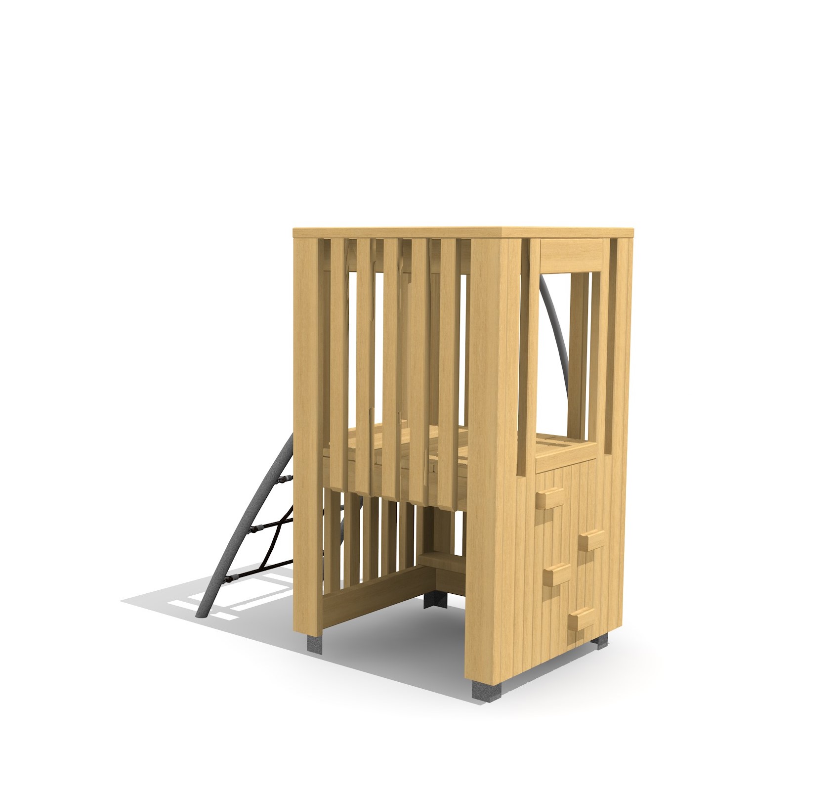 L’ORIGINAL. Petites tours de jeu avec beaucoup de possibiltés de jeu et de grimpe. Une petite maisonnette se trouve sous le podium.