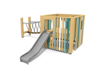 L’ORIGINAL. Les cubes ont deux niveaux de jeu avec plusieurs entrées. Un accès intérieur permet aussi d’arriver à l’étage. Un monde de jeu compact et ludique.