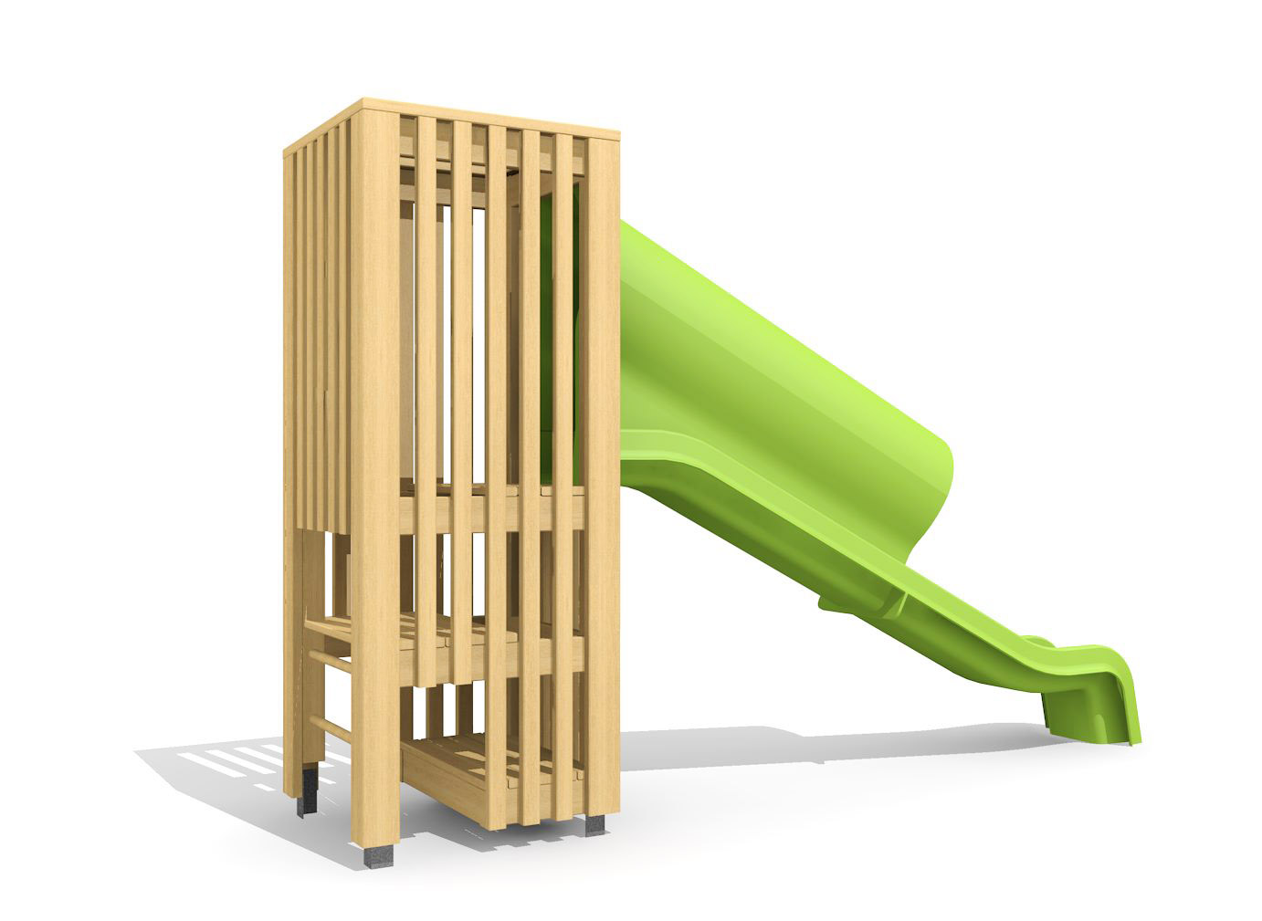 En bois de douglas Suisse, non traité. Tous les jeux avec consoles en acier galvanisé. Toit en matière synthétique résistante aux intempéries couleur anthracite. Toboggan en polyester.