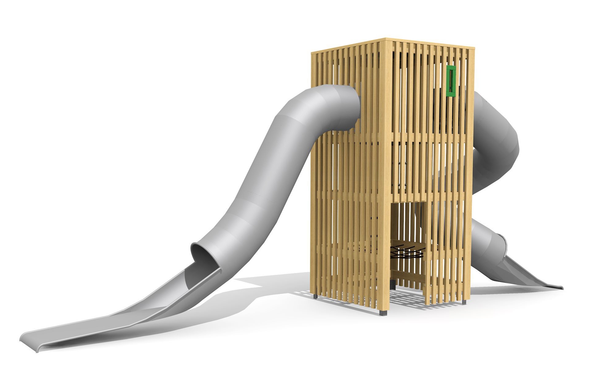 L’ORIGINAL. Les tobogans traversent la tour comme des vers. Tours fermées avec montée sûre en filets et cordes.