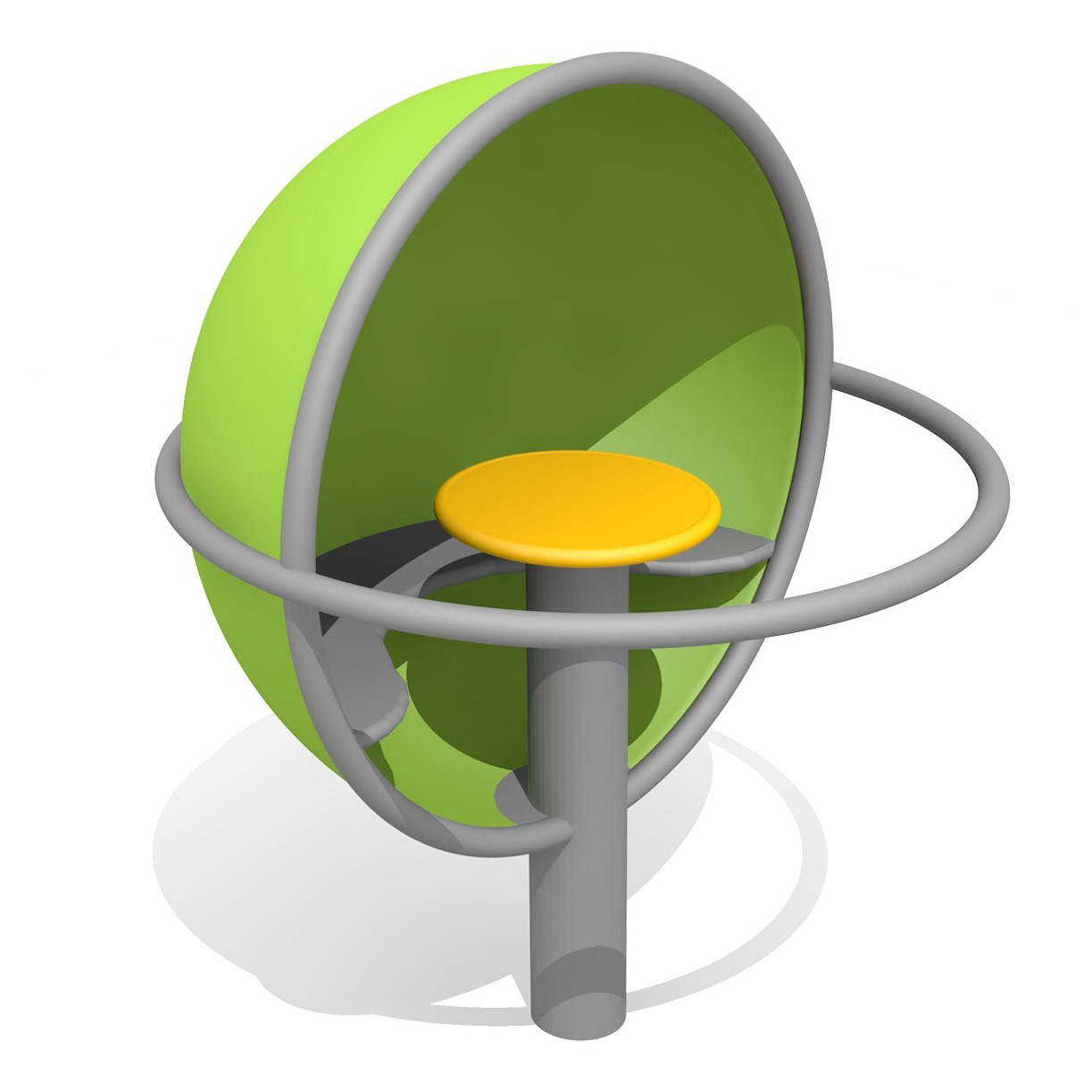 Exécution en acier galvanisé et laqué. Couleur standard melon et rouge. Assise en caoutchouc bleu. Autres couleurs sur demande.