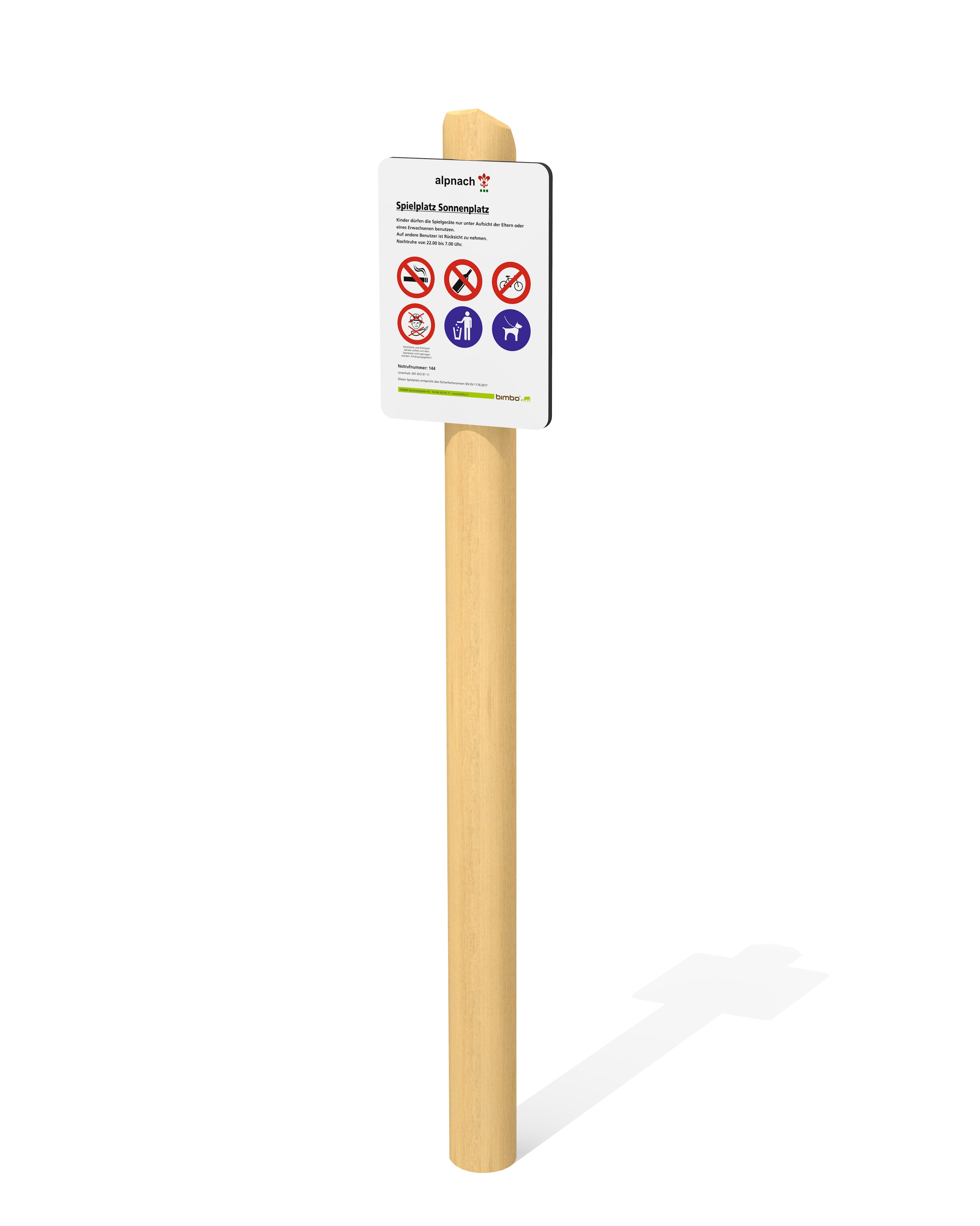 Les panneaux d'information sont exigés par la norme de sécurité SN EN 1176 pour les aires de jeux accessibles. Différentes données doivent obligatoirement y figurer.