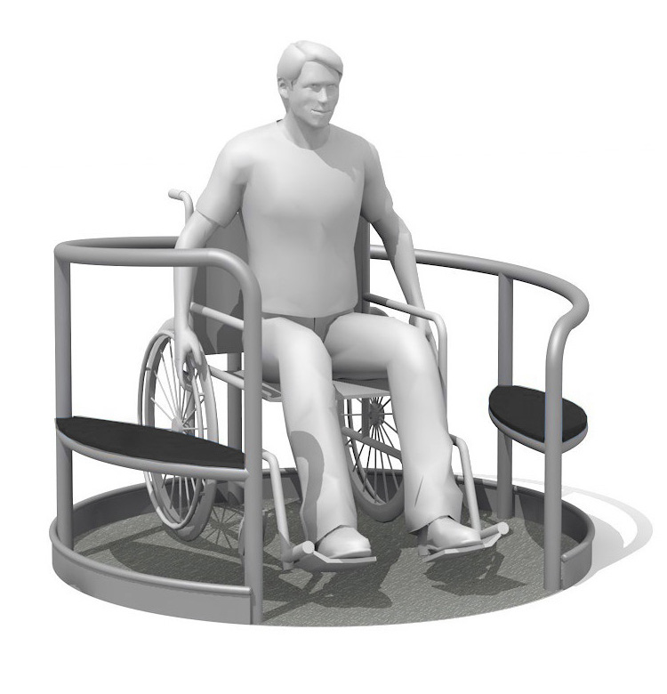 Un carrousel pour que tous puissent jouer ensemble. L’entrée libre de barrière et à fleur du sol facilite l’accès pour les chaises roulantes.