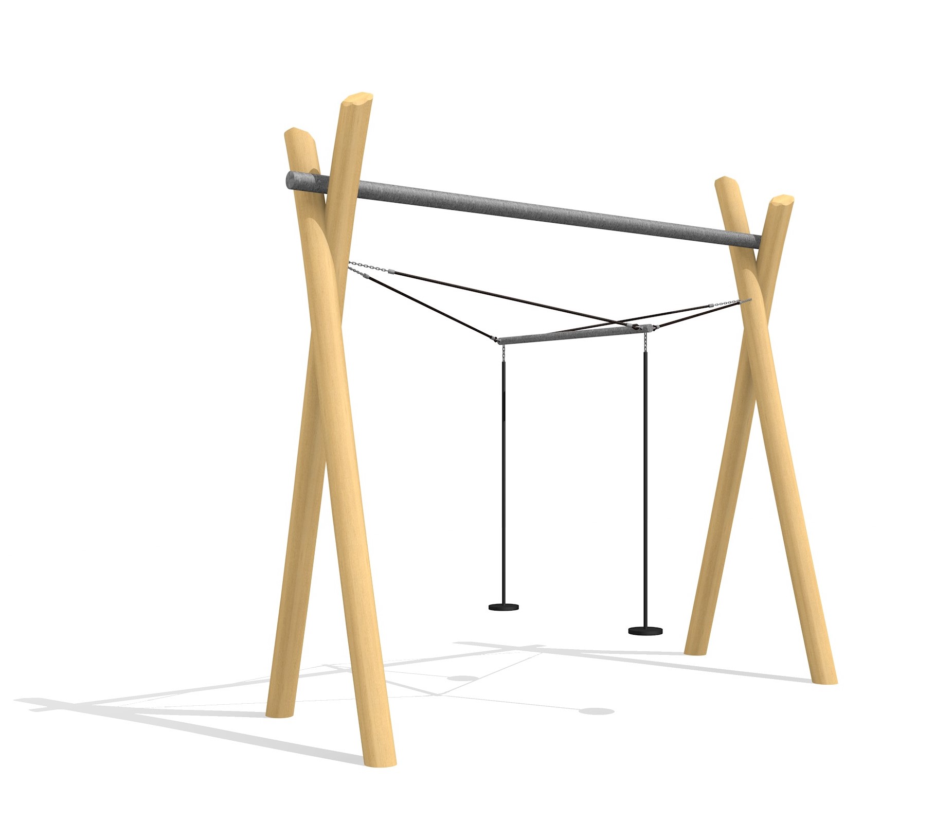 Construction massive en bois / métal. Mécanisme de rotation ne nécessitant pas de graissage. Sièges pendulaires avec une chaîne gainée. En bois de robinier massif, croissance naturelle.