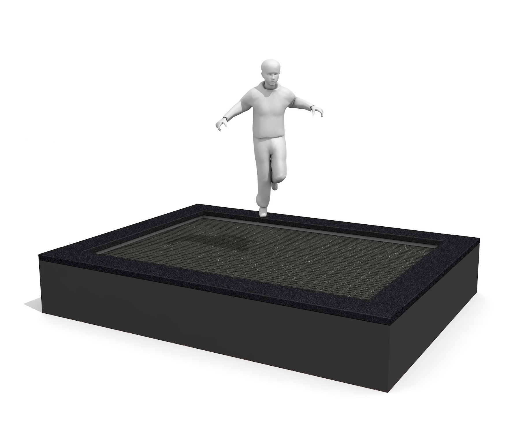 Ce trampoline est idéal pour toute place de jeux et de récréation et aura une fréquentation record. Pour des raisons de sécurité, la hauteur du saut est moindre qu’avec un trampoline normal.