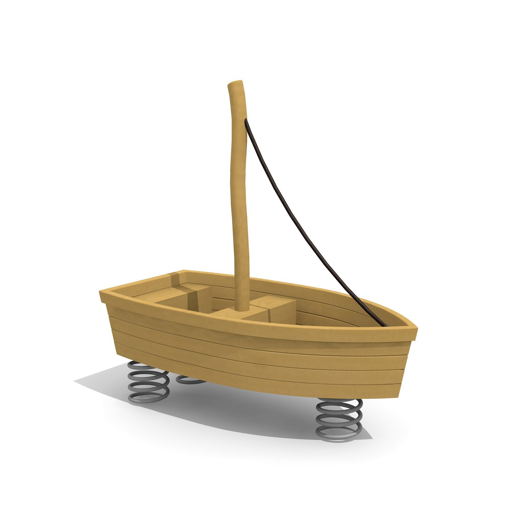 La partie supérieure est construite en bois massif. La partie inférieure comprend les ressorts habituels. Socle d'ancrage inclus. Ressort gris.