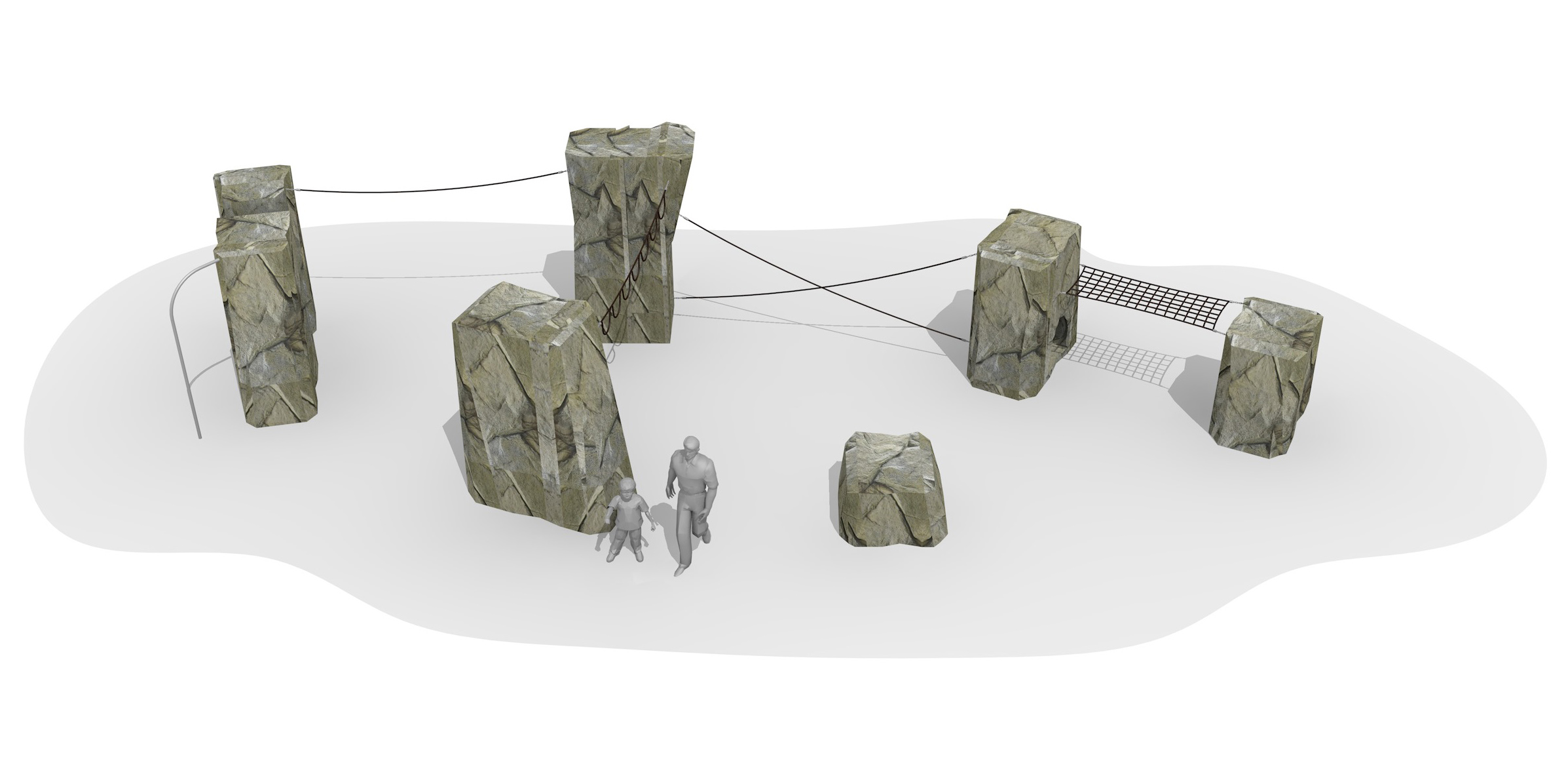Die kreative Formgebung beruht auf selbstaussteiffenden, hohlen Spritzbetonschalen. Je nach Zielgruppe wählt man unterschiedliche Schwierigkeitsstufen. Verschiedene "Felsfarben" stehen zur Auswahl. Jedes Stück ist ein Unikat.
