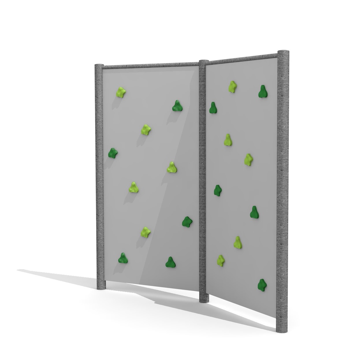 Parois en contreplaqué mélamine. Prises antiglisse colorées des deux côtés. Armature massive en tube de métal zingué à chaud.