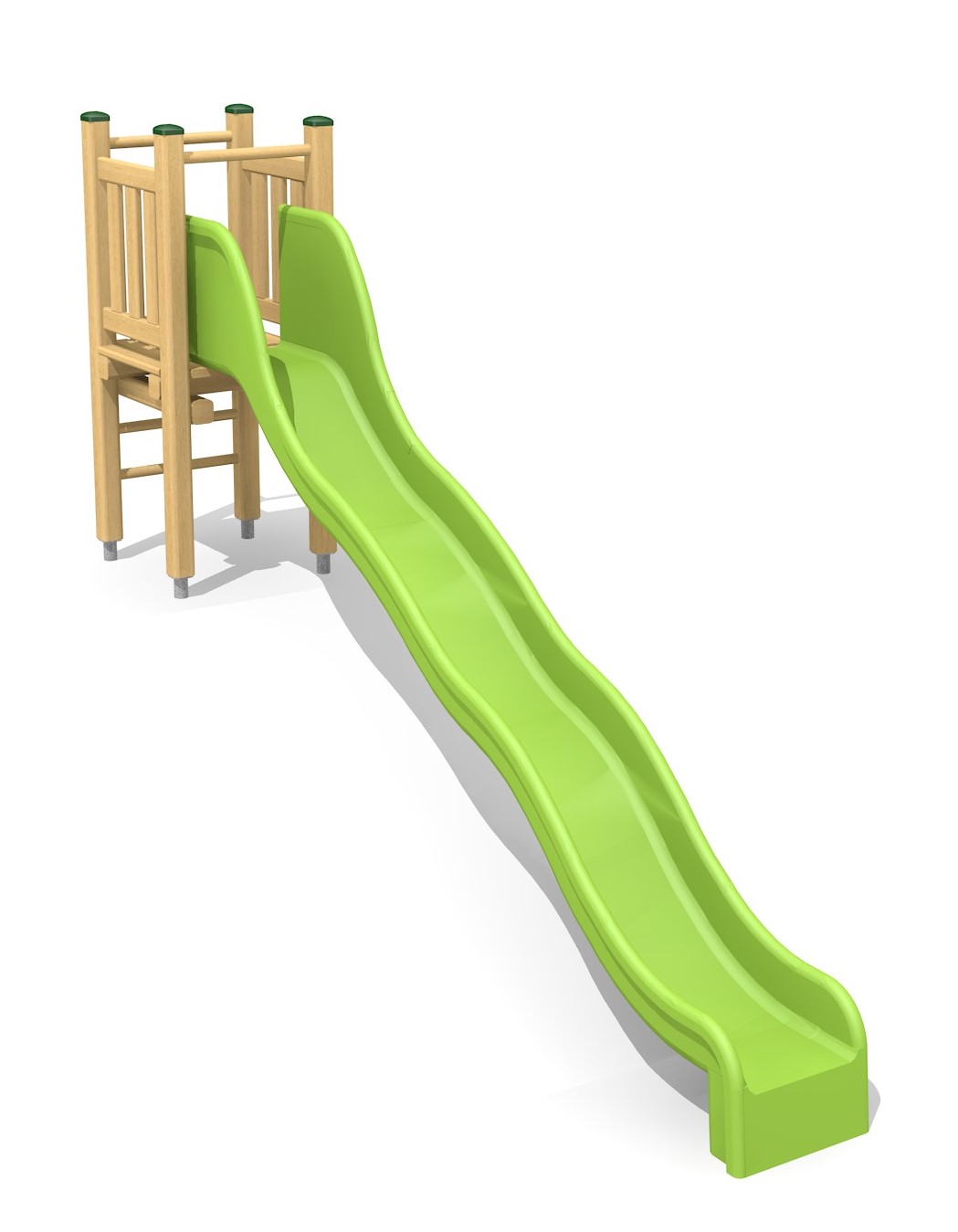 Toboggans en polyester stable et résistant aux intempéries avec plate-forme en bois. Couleur standard vert clair ou rouge, autres couleurs sur demande. Socle en métal inclus.