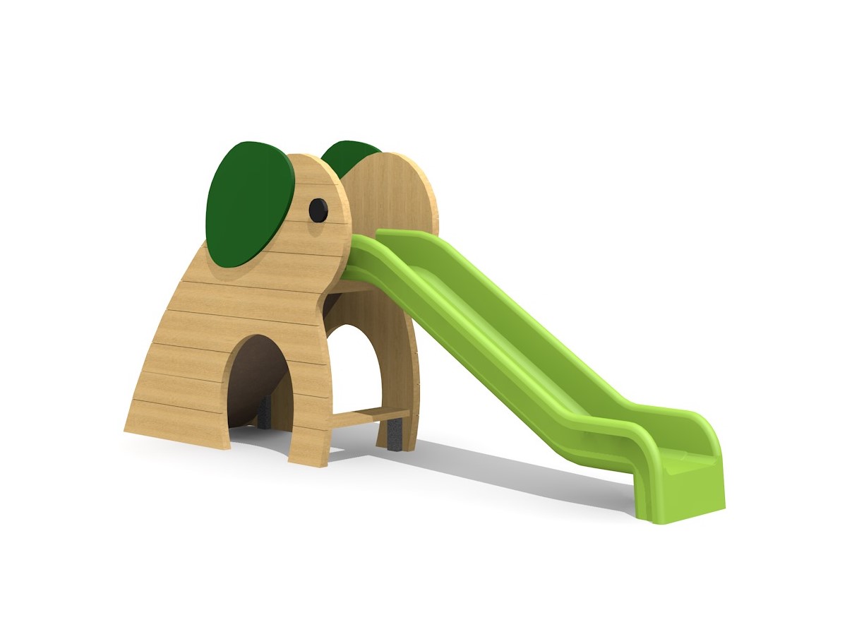 Ces drôles de toboggans fascinent les tout petits. La surface sous la plateforme offre un espace de jeux supplémentaire.