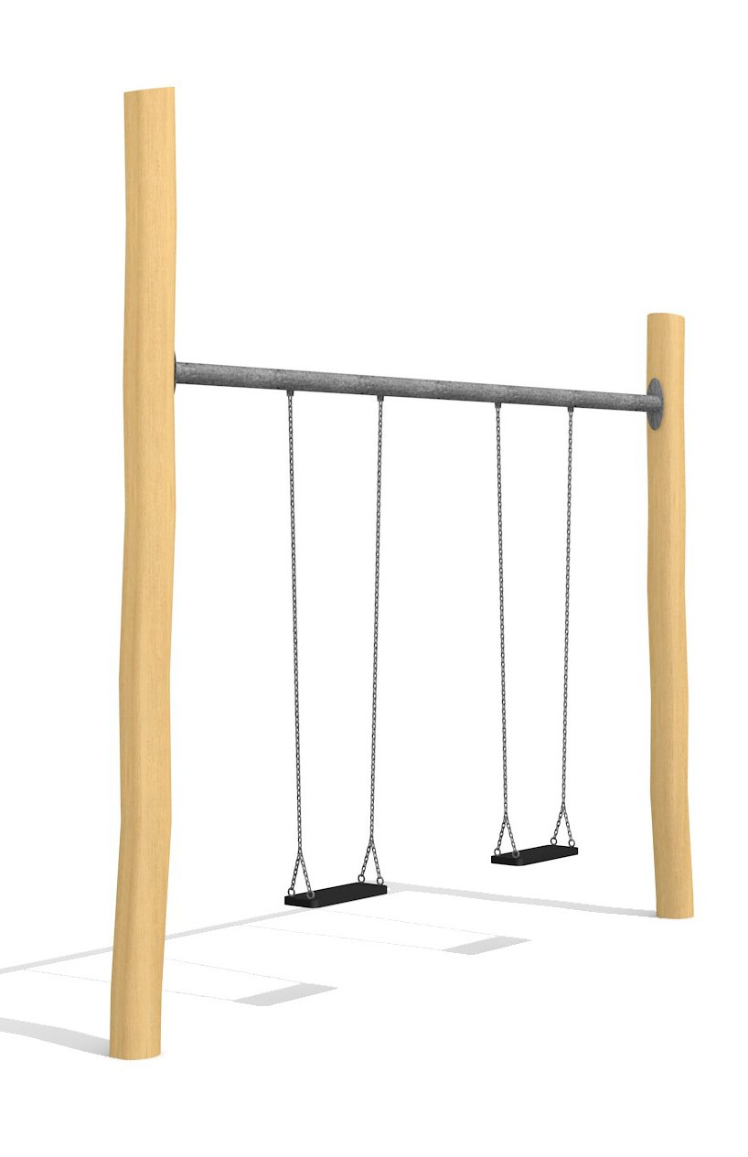 Suspension bimbo sans graissage. Siège de sécurité avec noyau métallique et chaînes en inox. Avec traverse en métal zinguées et en bois de robinier massif, croissance naturelle, non traité. Sur demande surface lasurée.